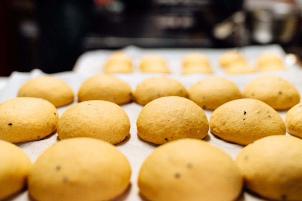 Inspiré des recettes algériennes et marocaines, le pain à la semoule est la pierre angulaire de nos sandwichs grâce à son coté gourmand et aérien. De la semoule, de la farine, un mélange d’épices secret, de la levure, du sel, du sucre, de l’huile et le tour est joué!