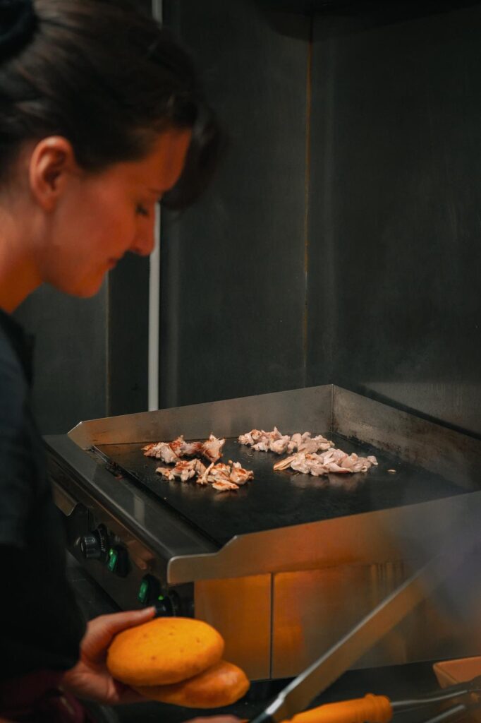 Les bouillons de poulet et de porc sont récupérés lors de la cuisson des viandes et réincorporés dans nos sauces, afin de renforcer leurs saveurs et leur complexité.